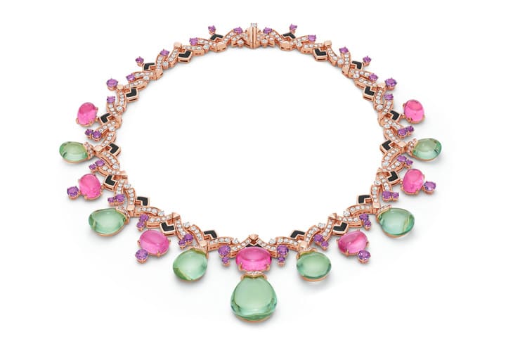 ▲Neon Chromatique頂級玫瑰金彩寶與鑽石項鍊。