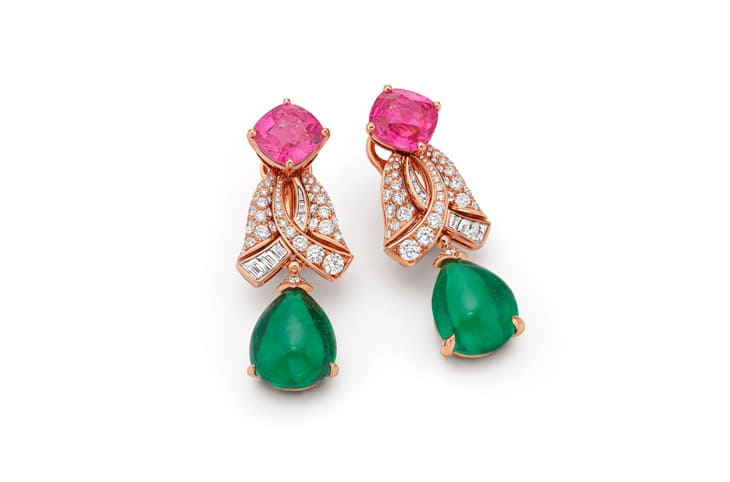 ▲Aeterna系列Verdant Grace頂級玫瑰金祖母綠、尖晶石與鑽石耳環。