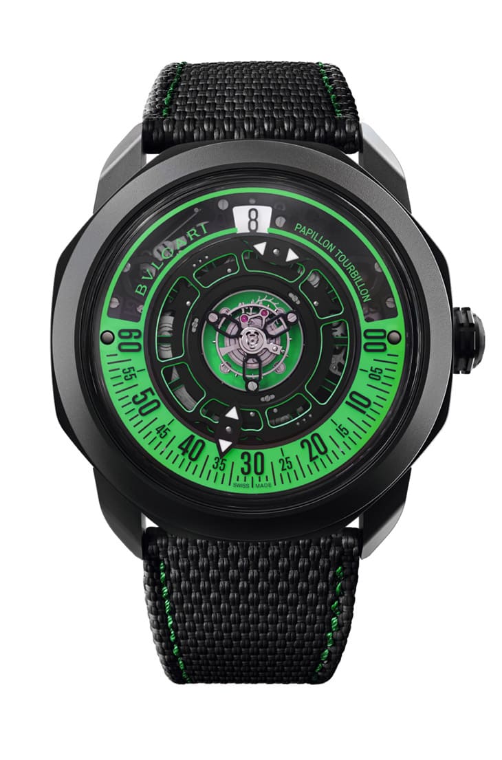 DLC鈦金屬材質/BVL348手動上鍊機芯/跳時、蝴蝶指針分顯示/陀飛輪裝置/藍寶石水晶鏡面/防水50米/錶徑44mm