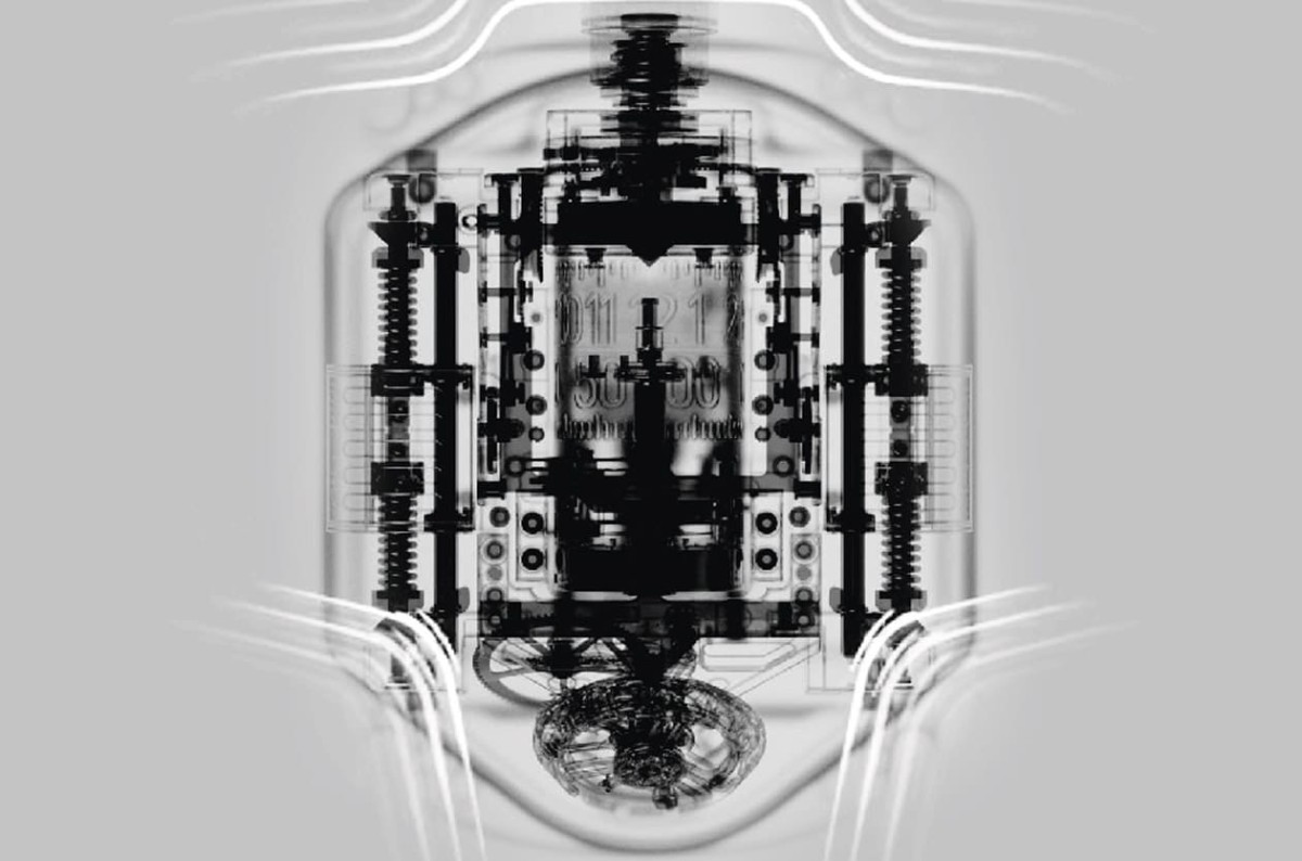 MP-10之所以被認為是里程碑,除了它是MP系列歷來累積的第10款作品之外,更因它徹底顛覆了傳統腕錶的結構概念,沒有面盤、沒有指針,甚至機芯也沒有自動盤。取而代之的是由592枚零件組成的HUB9013機芯,透過滾筒、線性配重以及傾斜陀飛輪來完成所有顯示與動能轉換。