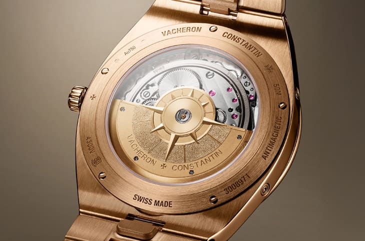透過藍寶石底蓋,可以欣賞到22K金自動盤,上面雕刻有風向羅盤圖案,象徵Overseas系列的旅行與探索精神。機芯零件皆經過精緻的手工打磨,包含日內瓦波紋、直線拉絲與倒角拋光,無論從任何角度觀賞,都能感受到細節中蘊含的工藝水準,更重要的是,這款機芯獲得日內瓦印記認證,代表著它在裝飾、性能與品質上的高標準。