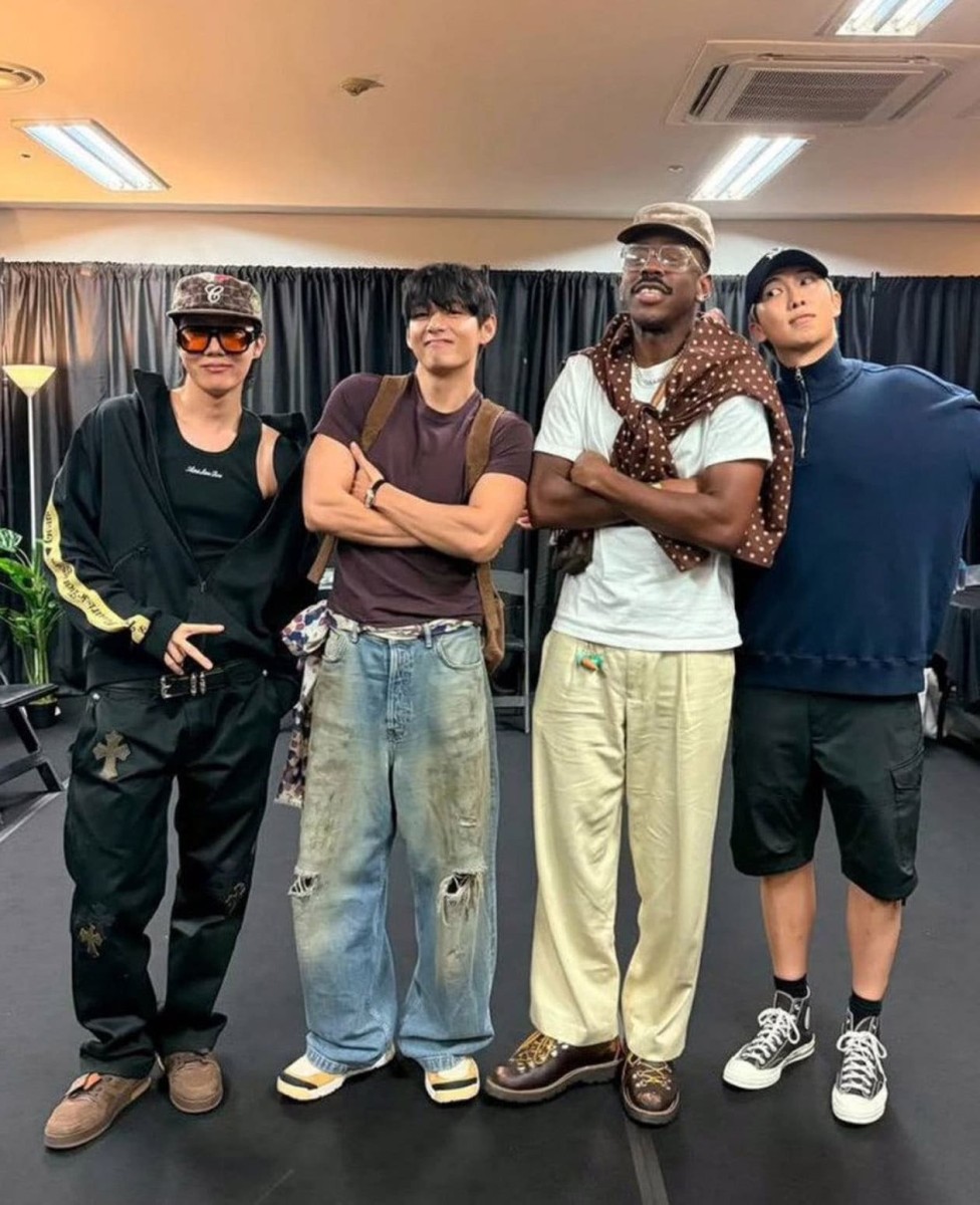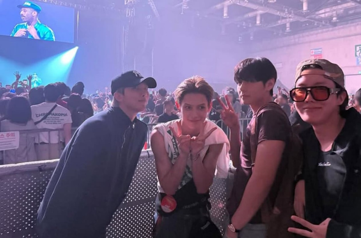 日前美國饒舌巨星造物主泰勒(Tyler, the Creator)的《Chromakopia》世界巡迴演唱會移師首爾,成為音樂圈一大盛事。當晚,BTS三位成員包括V、J-Hope與RM皆低調入場,卻依然被眼尖的粉絲發現,三人跟著音樂熱情合唱,甚至在後台與Tyler合影,還將現場片段分享到IG限時動態。對粉絲而言,這些片刻就像偷窺到巨星最真實的一面,而V更在動態裡分享Tyler贈送的T恤與他推薦的Mom’s Touch漢堡,展現親民隨性的風格。