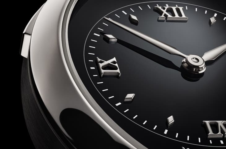 除了金屬與琺瑯,朗格還大膽將天然石材與藝術玻璃帶入製錶領域,例如縞瑪瑙(Onyx)便是其中的代表,黑色縞瑪瑙面盤經過細緻切割與拋光,呈現出宛如鏡面般的深邃光澤,這種材質較少出現在高級製錶領域,因為切割難度高,一旦有瑕疵就難以修復,但正因如此,當它與朗格經典設計結合,便營造出低調卻極具張力的氛圍。Lange 1三十週年紀念版的鉑金限量款,就是首度搭載黑色縞瑪瑙面盤,展現了朗格將傳統與創新相互融合的巧思。