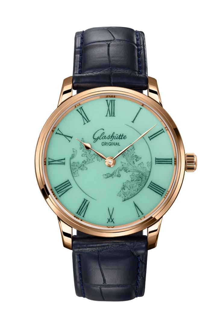 GLASH?TTE ORIGINAL 2025年迎來創立180週年,選擇與擁有315年歷史的麥森瓷器(MEISSEN)再續德國工藝的傳奇,推出Senator Meissen議員麥森限量系列,於是機械製錶的精準理性,與瓷藝繪飾的浪漫詩意,於腕上完美交融。