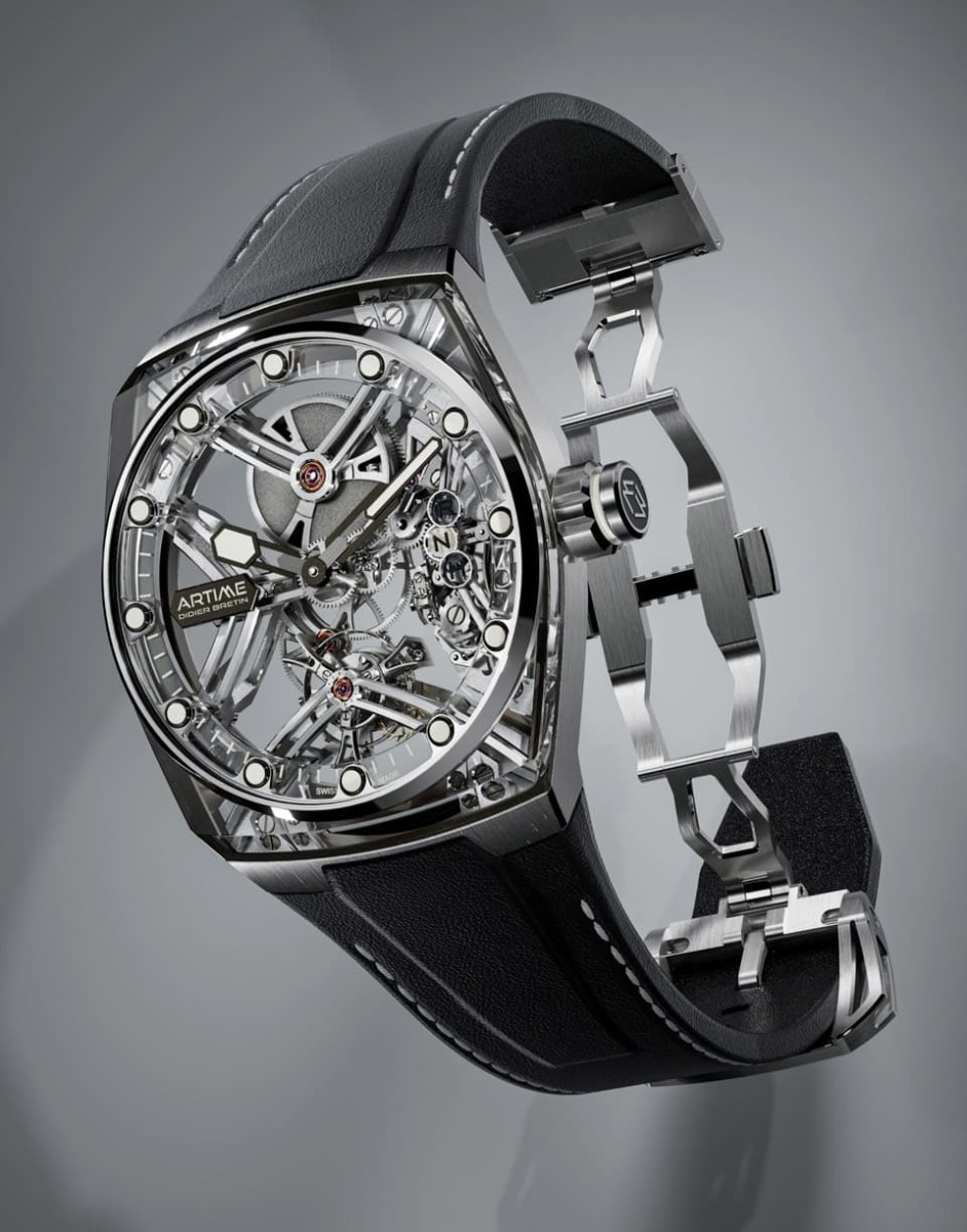 創立不到兩年時間的ARTIME可能錶迷還會有點陌生,但其實他們家的創辦團隊之前都有在大品牌服務的經驗。這次ARTIME將帶來旗下第一款作品ART01,這只錶完整體現了品牌的創作精神,也就是用細緻工藝實踐大膽創意。錶款以藍寶石水晶製作,內部機芯呈現高度鏤空,看不到任何的機板與夾板,其中蘊含雙層游絲陀飛輪、錶冠功能選擇器,橋板呈圓拱形且嵌套式排放,設計語彙被描述為清楚且極致現代。手錶參考價為NT$ 7,800,000。