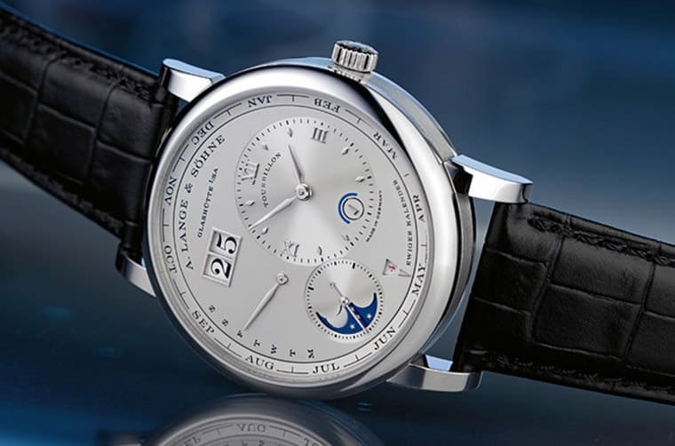 朗格1994年回歸現代錶壇後首發的四款作品包含了Lange 1、Saxonia、Arkade和Tourbillon "Pour le Mérite”,其中Tourbillon "Pour le Mérite”擁有最複雜的工藝水準,是錶壇史上第一款集結陀飛輪和芝麻鍊的手錶作品,而且錶徑還只有38.5mm,令人嘆為觀止。後來朗格推出錶徑縮小一點的改款,並啟用鉑金搭配黑色面盤的組合,成為朗格高級製錶工藝的象徵。