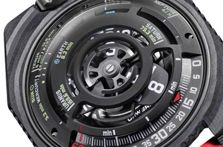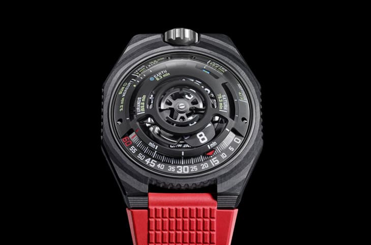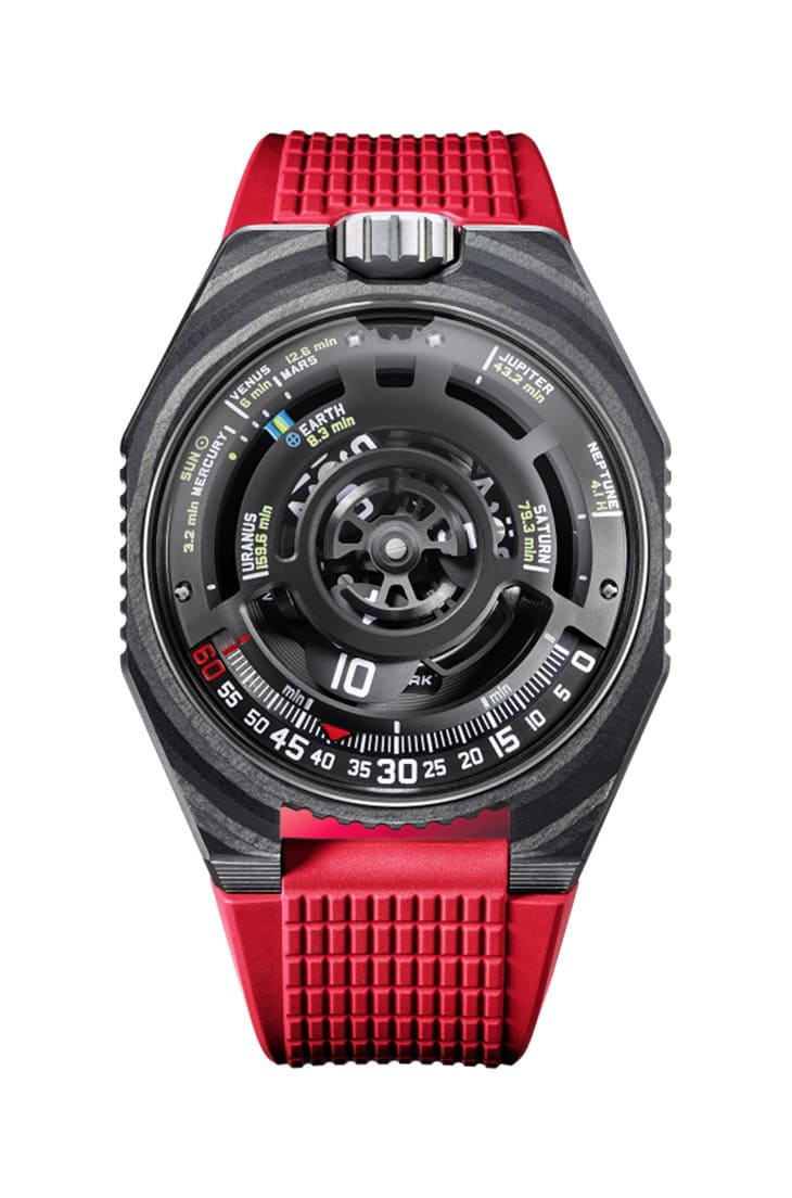 碳纖維材質/UR 12.02自動上鍊機芯/衛星小時、分顯示/太陽光到達太陽系八大行星所需時間顯示/藍寶石水晶鏡面/防水50米/錶徑51.73x43mm/參考價:NT$ 2,650,000