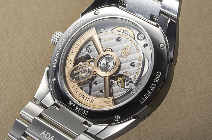 ▲手錶搭載全幅鏤空自動盤的PF770機芯,機芯的零件均經過細部修飾,展現出高級製錶一絲不苟的職人工藝精神。