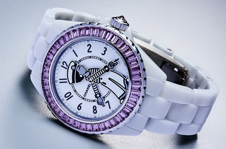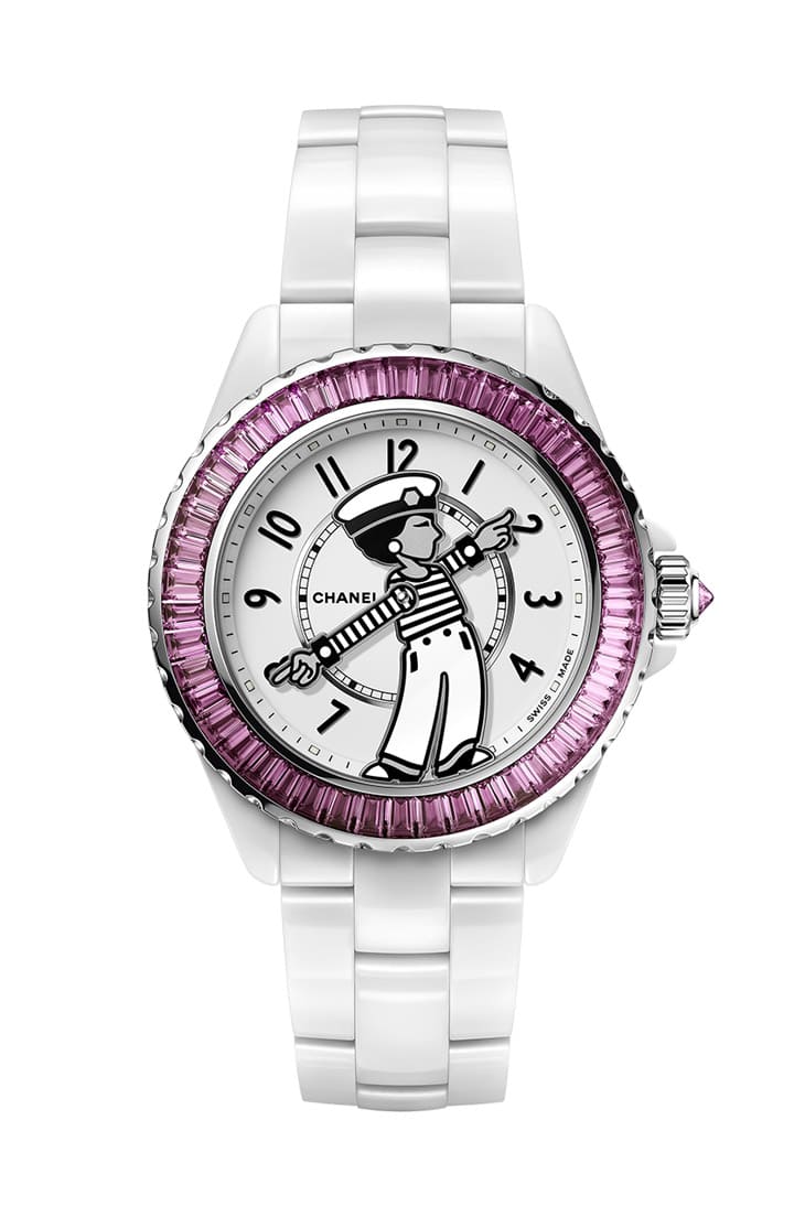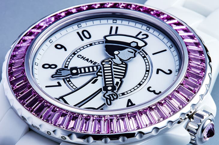 Mademoiselle J12 La Pausa限定腕錶面盤上的香奈兒女士人像創作靈感來自品牌創辦人拍攝於法國蔚藍海岸的 La Pausa自家別墅花園的照片,當天香奈兒女士身穿布列塔尼針織衫和鈕扣褲裝,頭戴海軍帽,顯得既休閒又率性,此人像的雙手設計為活動式,能夠繞著面盤轉動,也因此錶款沒有傳統的時、分指針,而將逸趣橫生的人像雙手直接當成顯時的依據。如此特殊設計的核心源自錶款內部的Caliber 12.1自動機芯,它是近年J12系列的基礎機芯,由香奈兒持有股份的瑞士知名機芯廠KENISSI戮力打造,品質和口碑都有亮眼表現。