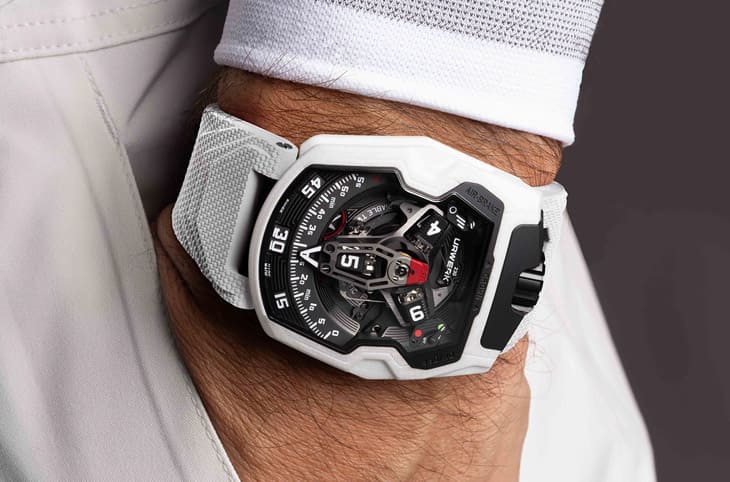 玻璃纖維強化陶瓷材質/UR-7.30自動上鍊機芯/衛星小時、逆跳分顯示/上鍊氣流調節顯示/自動上鍊狀態顯示/藍寶石水晶鏡面/防水30米/錶徑53.55x44.81mm/限量35只/參考價:NT$ 6,200,000