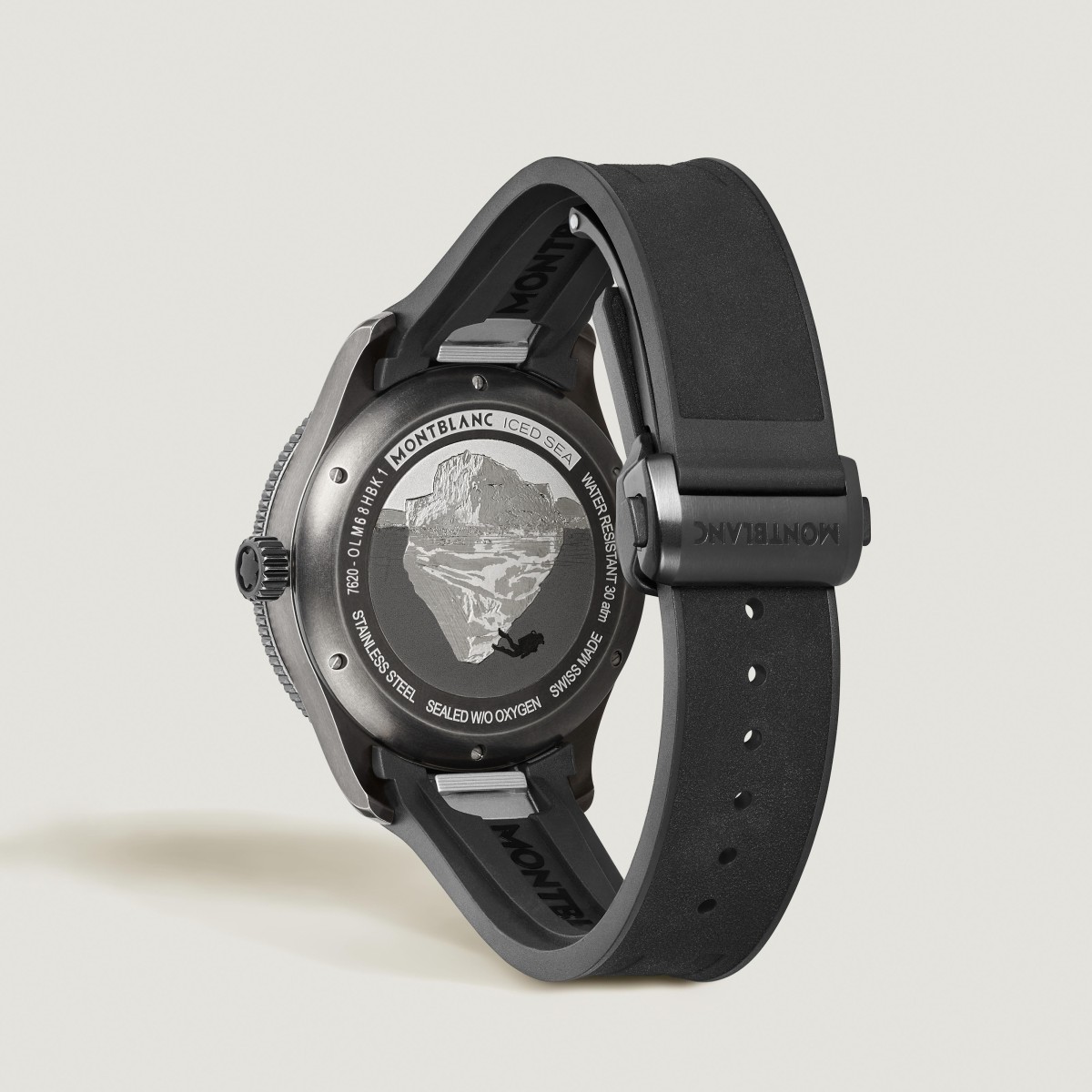 ▲錶殼底蓋飾有3D鐫刻,呈現潛水員和冰山圖案