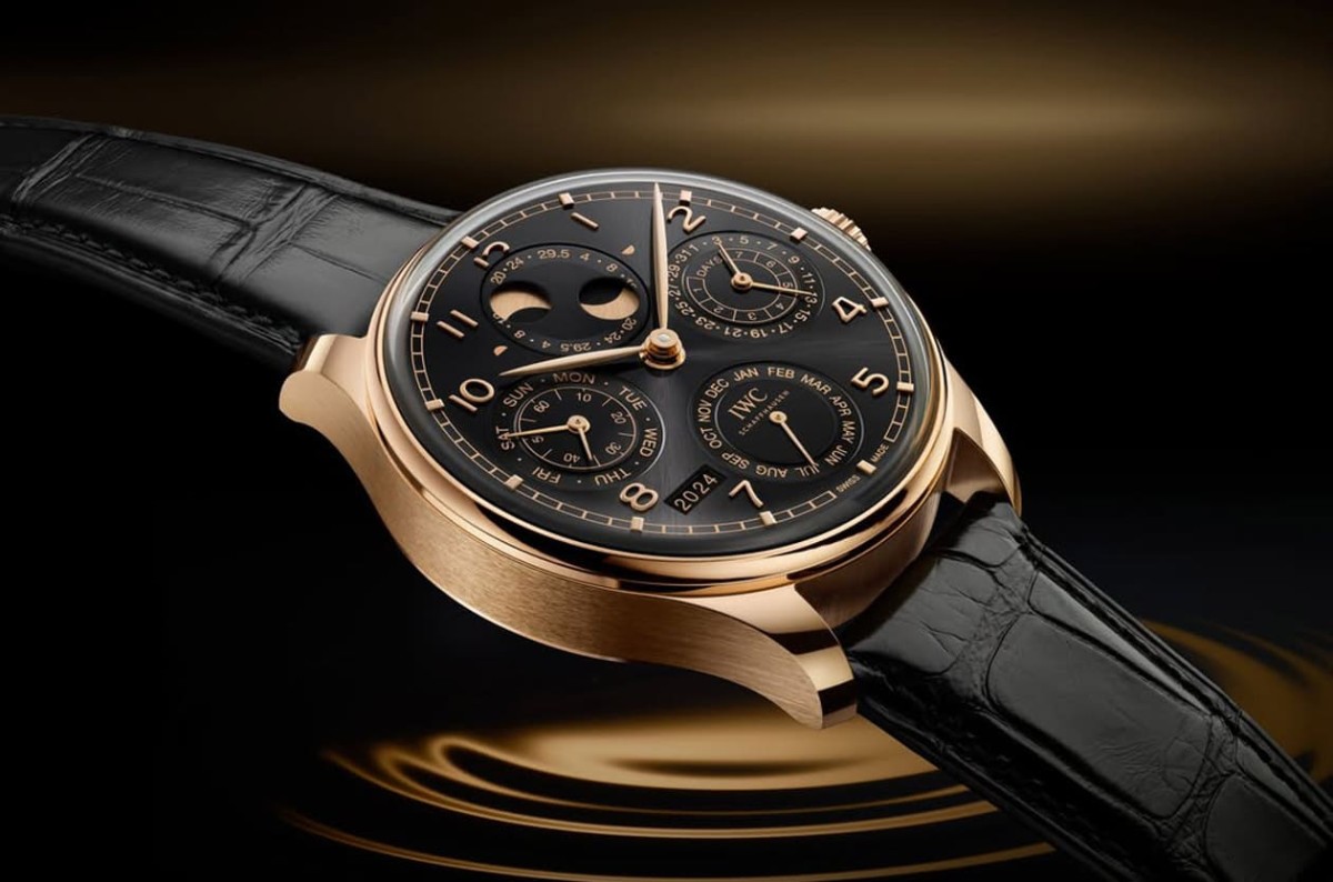 ▲葡萄牙萬年曆腕錶44具備纖薄錶殼與雙層箱型藍寶石水晶鏡面,並搭載更堅固耐磨的Armor Gold?材質,展現輕盈又奢華的正裝風格。