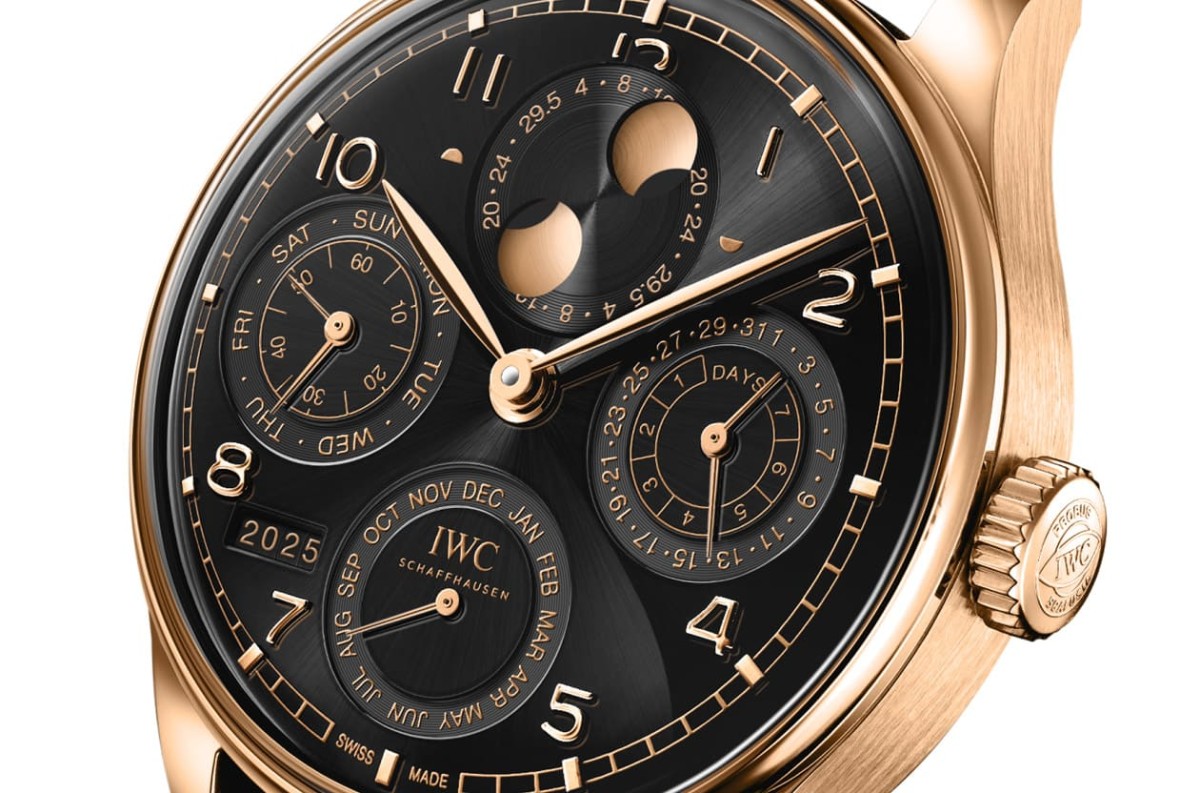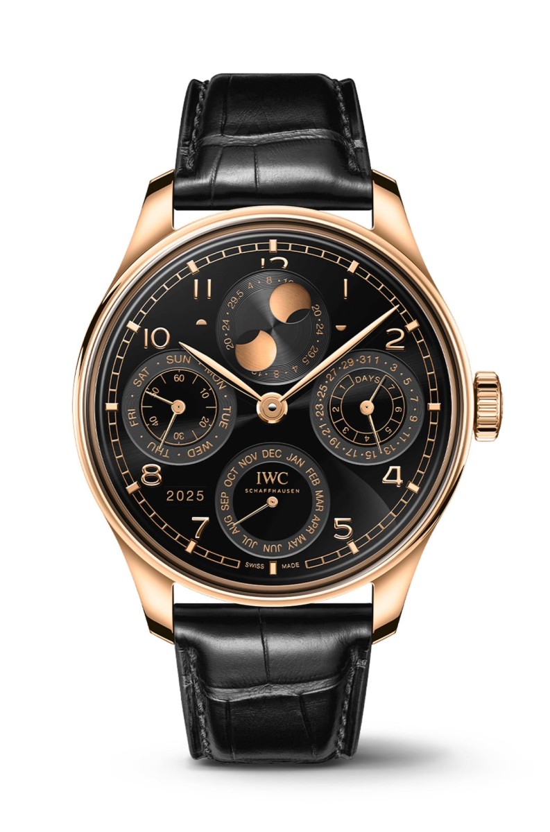 葡萄牙系列近年經歷大改款後,腕錶因此採用經過重新設計的錶殼與錶圈比例,使視覺效果更纖薄流暢,雙面箱型藍寶石水晶鏡面的設計,進一步提升透視感與腕錶的現代感。面盤部分則是另一亮點,其需經15層透明漆塗裝、拋光,方能呈現出深邃且具高光澤的質感,尤其Armor Gold?款式加上長日鍊的配置,既有收藏級機械性能,也禁得起日常佩戴的洗禮。此款萬年曆腕錶面盤設置的南北半球雙月相顯示,在市場上眾多同功能作品中也顯得獨樹一幟,除了一目瞭然全球視角觀察到的月亮陰晴圓缺,其精準度更可達577.5年才需調整一天,將IWC對實用複雜功能的理解發揮得淋漓盡致。