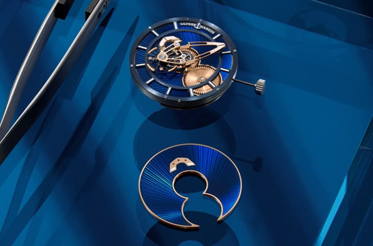 如前所述,這是Freak X系列首次在設計上加入琺瑯元素,雅典錶別開生面地將琺瑯工藝應用在整體時間顯示結構中最顯眼、面積也最大片的面盤上,乍看似乎僅是一項設計上的變化,實則背後還蘊含有高度複雜的製程與對傳統技藝的尊重和發揚決心。