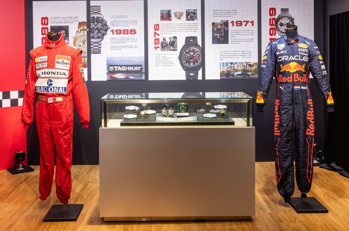 特展重頭戲之一,是首次在台亮相的兩件重量級賽車服——來自傳奇車手Ayrton Senna與現役衛冕F1世界冠軍Max Verstappen,這兩套戰袍,彷彿兩個時代的縮影,象徵著泰格豪雅在不同世代賽車場上的持續影響力與見證。對於熱愛F1的車迷而言,這不只是視覺上的驚喜,更是一種與偶像時代交會的情感共鳴。