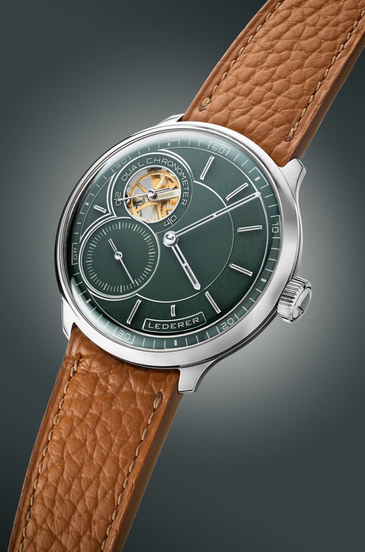 LEDERER的錶款不只在技術上精雕細琢,設計也同樣令人著迷,像是全新推出的CIC 39mm系列,就展現了品牌從機械複雜性過渡到設計純粹性的演進。Nordic Silver以銀白面盤詮釋晨曦湖光的意境,而Racing Green則將機械與自然結合,讓每一只手錶既像儀器,也像藝術品。更難得的是,這些錶款的所有零件幾乎全數由品牌工坊自行製作與修飾,從打磨、倒角到組裝,過程全程控管,確保品質無懈可擊。