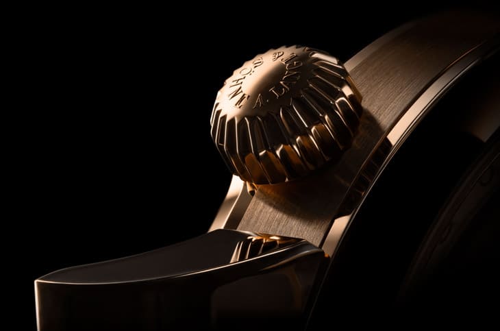 至於2019年推出的Zeitwerk Date,更是在功能與設計上向前跨出一步,面盤外圍加入一圈玻璃製的日期環,數字從1排到31,看起來簡潔俐落,但其實背後暗藏心思。這個日期顯示透過下方移動的小色段指示當天日期,午夜時分準時推進,既清晰,又不會搶去跳字顯示的風采,佩戴者還能透過8點鐘位置的按把快速調整日期,操作流暢直覺,同時保有精準切換的手感。小時顯示則可以透過4點鐘的按把進行獨立調校,這項設計乍看低調,實則別具深意,因為按把在「鬆開」的那一刻才會啟動調整,避免誤觸,也減少對機芯結構的負擔,可見朗格在設計上的嚴謹態度。