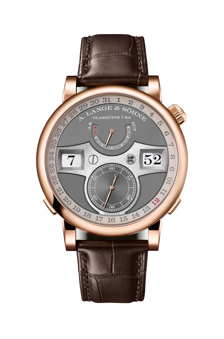 Zeitwerk系列自2009年誕生以來,一直是朗格最具未來感的代表,手錶採用中央橫列式跳字顯示,透過每分鐘一次、每日高達1,440次的精準跳轉,徹底翻轉了傳統製錶對「讀時」這件事的想像,這不是簡單地以機械模仿電子顯示,而是以極其複雜的專利跳字裝置和恆定動力擒縱,將精準與力學美學結合,讓人幾乎能「聽見」時間在機芯中跳動的節奏。