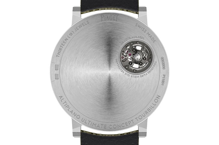 ▲錶背開有一枚圓形視窗,完整展現970P-UC機芯陀飛輪下層結構,底蓋表面飾以拉絲處理,不易突顯細紋與刮痕。