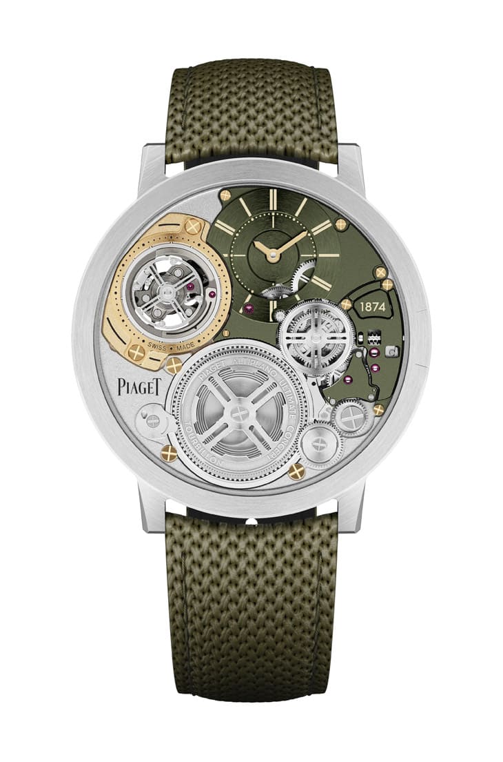 在超薄手錶領域,PIAGET向來扮演關鍵角色,從1957年的9P手上鍊機芯到1960年僅2.3mm厚的12P自動機芯,伯爵早已奠定「超薄專家」的地位。雖然這些年陸續有品牌刷新紀錄,但伯爵不靠短暫數字,而是憑藉技術底蘊與美學細節,持續鞏固在業界的份量。2025年,品牌將Altiplano系列帶向全新篇章,以卡其綠搭配黃金,推出兩款焦點新作,分別是Altiplano Ultimate Concept終極概念陀飛輪與Altiplano Ultimate自動錶。