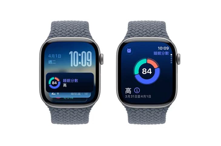 ▲Series 11導入「睡眠分數」功能,結合心率、血氧與體溫數據,全面分析夜間狀態,並提供改善建議,幫助用戶追蹤與優化睡眠品質。