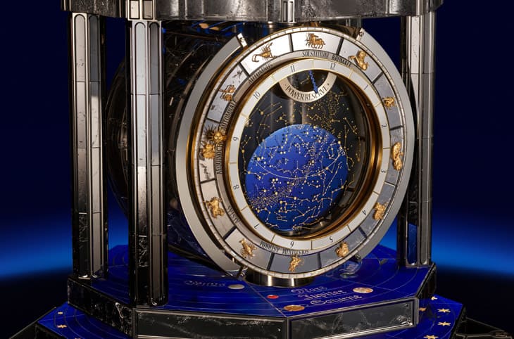 VACHERON CONSTANTIN 2025年為慶祝270週年推出的La Quête du Temps座鐘,無疑是一項史詩級的存在,它高達1.07公尺,重達250公斤,歷經7年研發,集結6,293枚零件並能展示23項複雜功能,還申請了7項專利,從規模到細節都屬於宏篇鉅製,儼然是一部活生生的時間交響曲。