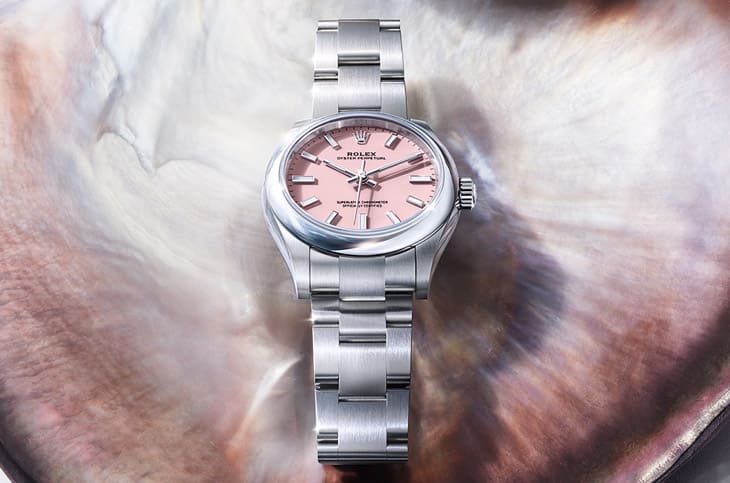 ▲2025年Oyster Perpetual新增柔和粉彩色調,延續Stella靈感的明亮風格,同時保留黑色、深藍和銀色等經典選擇,提供豐富面盤搭配。