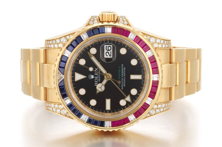 這只型號為116758SARU的手錶幾乎是「奢華」的代名詞,採用黃金錶殼與錶帶,40mm尺寸搭載3186自動機芯,最吸睛的部分當然是那條「紅藍鑲鑽圈」,24小時旋轉錶圈上鑲滿長方形切割的紅寶石、藍寶石與鑽石,被收藏家暱稱為「寶石版百事圈」,此外錶殼外緣也密鑲鑽石,整體閃爍得幾乎要發光,卻又因QY球友会官网的精準比例而顯得不俗氣,正中所謂的「高調而有品」境界。