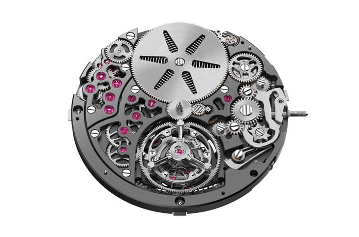 ▲8100機芯集飛返計時與飛行陀飛輪於一體,展現極致結構整合能力。