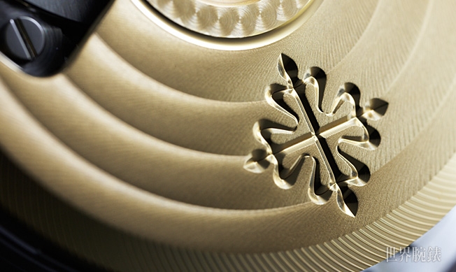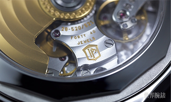 ▲鐫刻在機芯上的PP印記。