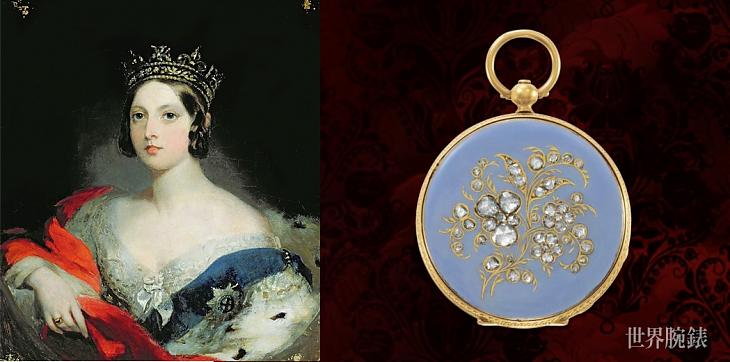 ▲1851年倫敦世界博覽會上,英國維多利亞女皇向百達翡麗購買的粉藍色琺瑯鑲鑽懷錶。